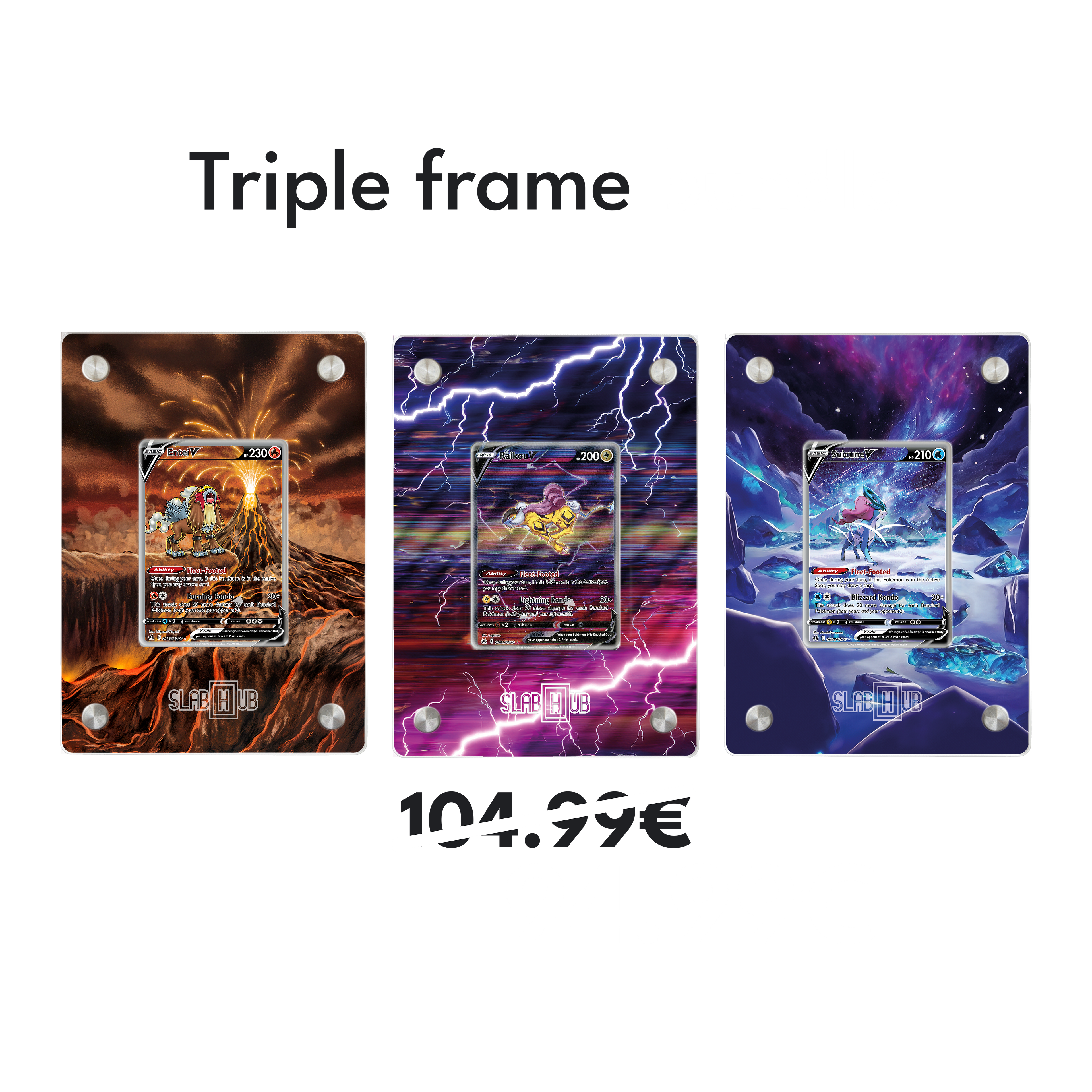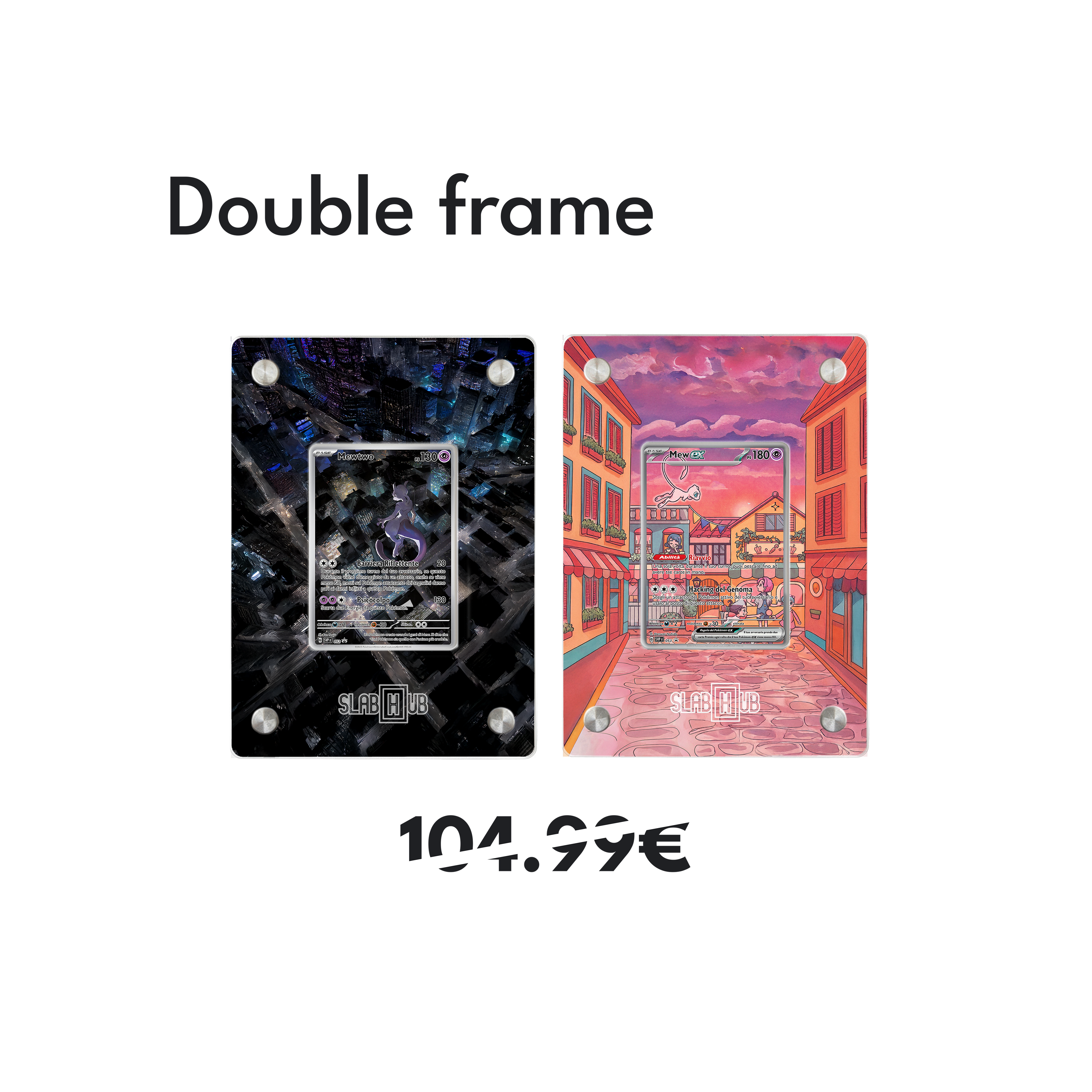 Each Slab Hub frame is easy to assemble: just stack the three plexiglass panels in order (back → middle with cutout → front), place the artwork on the base panel, insert your card in a perfect sleeve, and close everything using the 4 screws with rubber washers.