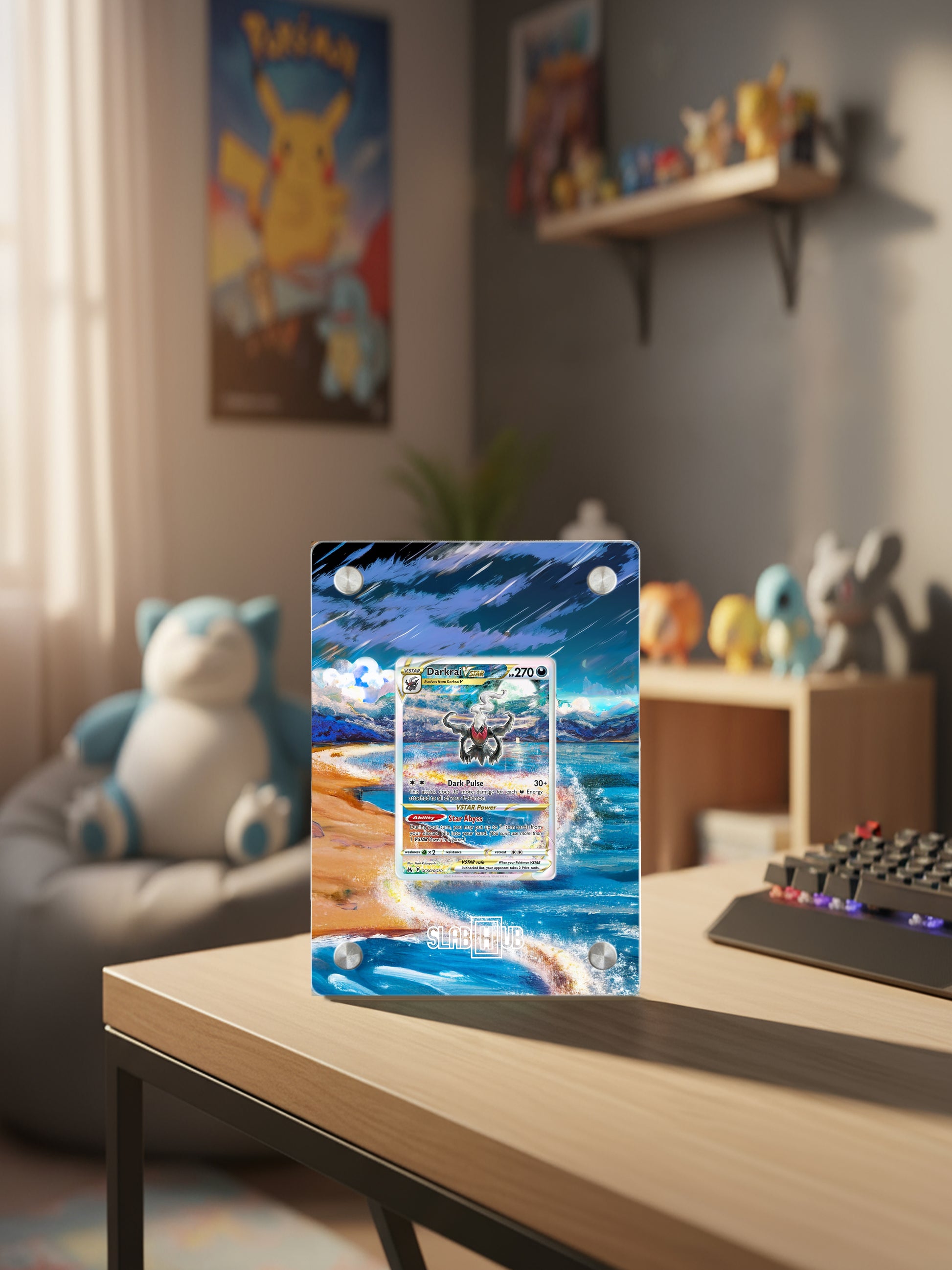 This piece is a faithful visual extension of the card Darkrai VSTAR CRZ GG50/GG70 - Sword & Shield - Crown Zenit (Japan version: s12a 228/172 VSTAR Universe), designed to blend seamlessly with the slab you own. The composition enhances the card’s energy, color, and identity — turning it into a refined fusion of collectible culture and wall art.